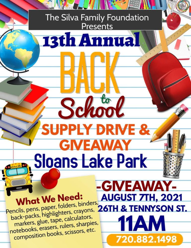 The Silva Family Foundation presents: 13th Annual Back School Supply Drive and Giveaway! August 7th! 11 a.m. at Sloans Lake Park 26th and Tennyson St. CO-CABE will be there to meet students and parents! Stop by the CO-CABE TABLE!